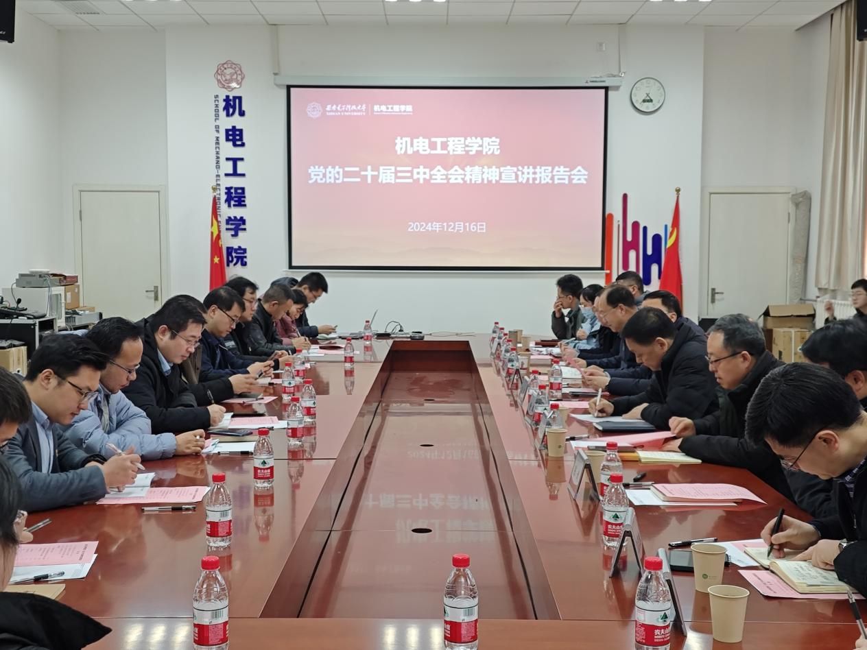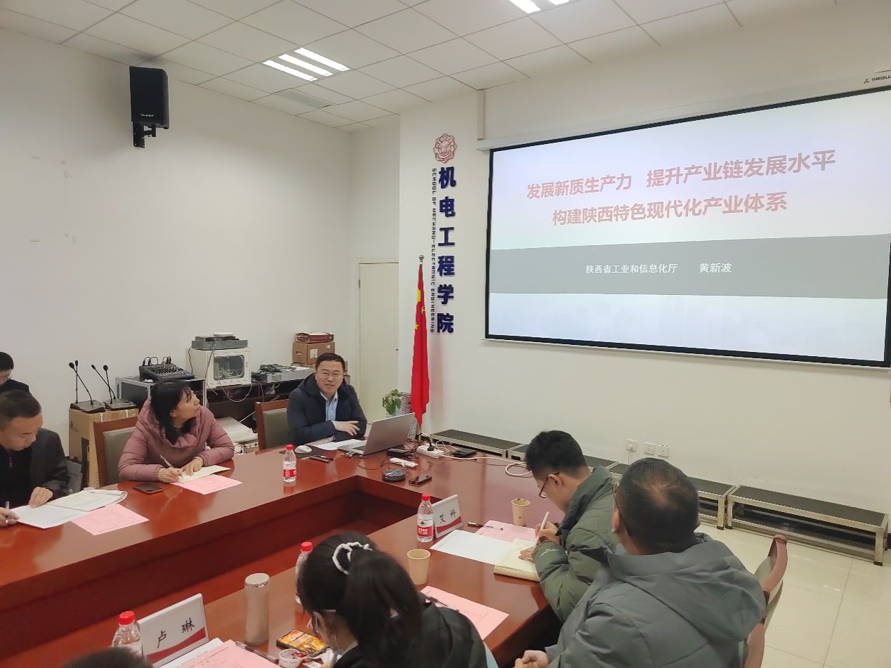 在北校区主楼三区145北会议室举办党的二十届三中全会精神宣讲报告会,邀请陕西省工业和信息化厅副厅长黄新波到会讲授。校党委常委、副校长王泉,西安匠为智能科技有限公司董事长张敏,黑料网