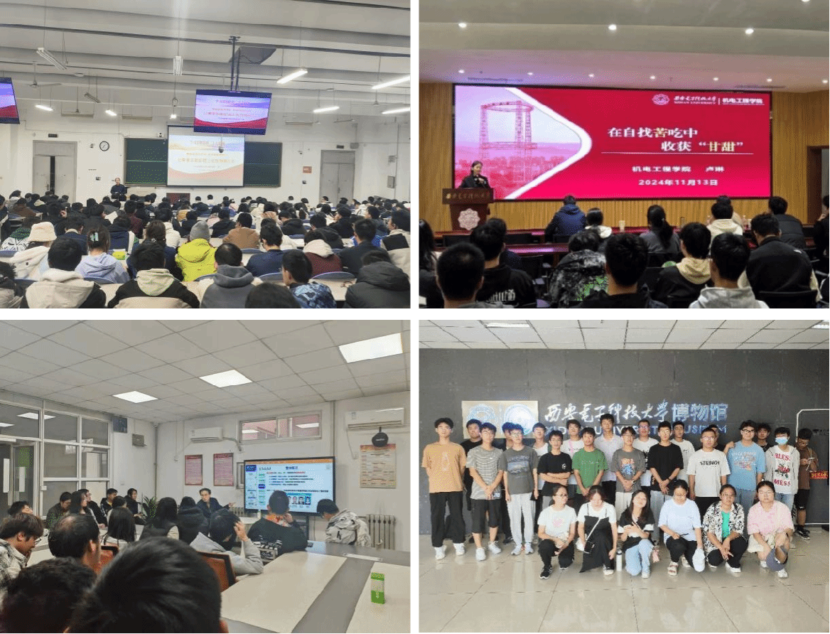 人才培养方案、机电类专业特色、专业课程体系、职业规划和岗位面向等方面进行深入讲解,帮助新生正确认识专业性质和学科特点,明晰专业未来发展方向和就业前景,做好职业理想与发展目标的前置。开展本科学籍管理规定讲座,帮助新生依据学籍管理规定中的毕业要求和条件,制定合理的学习计划。三是组织新生参观国重实验室、大工程大项目以及往届优秀毕业生毕业设计作品,感受专业浓厚的实践氛围。组织新生参观“高性能电子装备机电集成制造全国重点实验室”、封装制造实验室等科研场所12场,在“逐日工程”试验场了解中国天眼模型中的“西电智慧”与“西电方案”,以及“逐日工程”项目的背景与意义。鼓励同学们在仰望星空的同时,做到脚踏实地。通过项目科研人员的讲解,结合教师自身的学习经历,指导学生如何在学习与课外活动之间找到平衡。在工训中心组织学生参观学习往届优秀毕业生毕业设计作品,增强学生专业学习兴趣,为学生学有所长、学以致用打下良好基础。