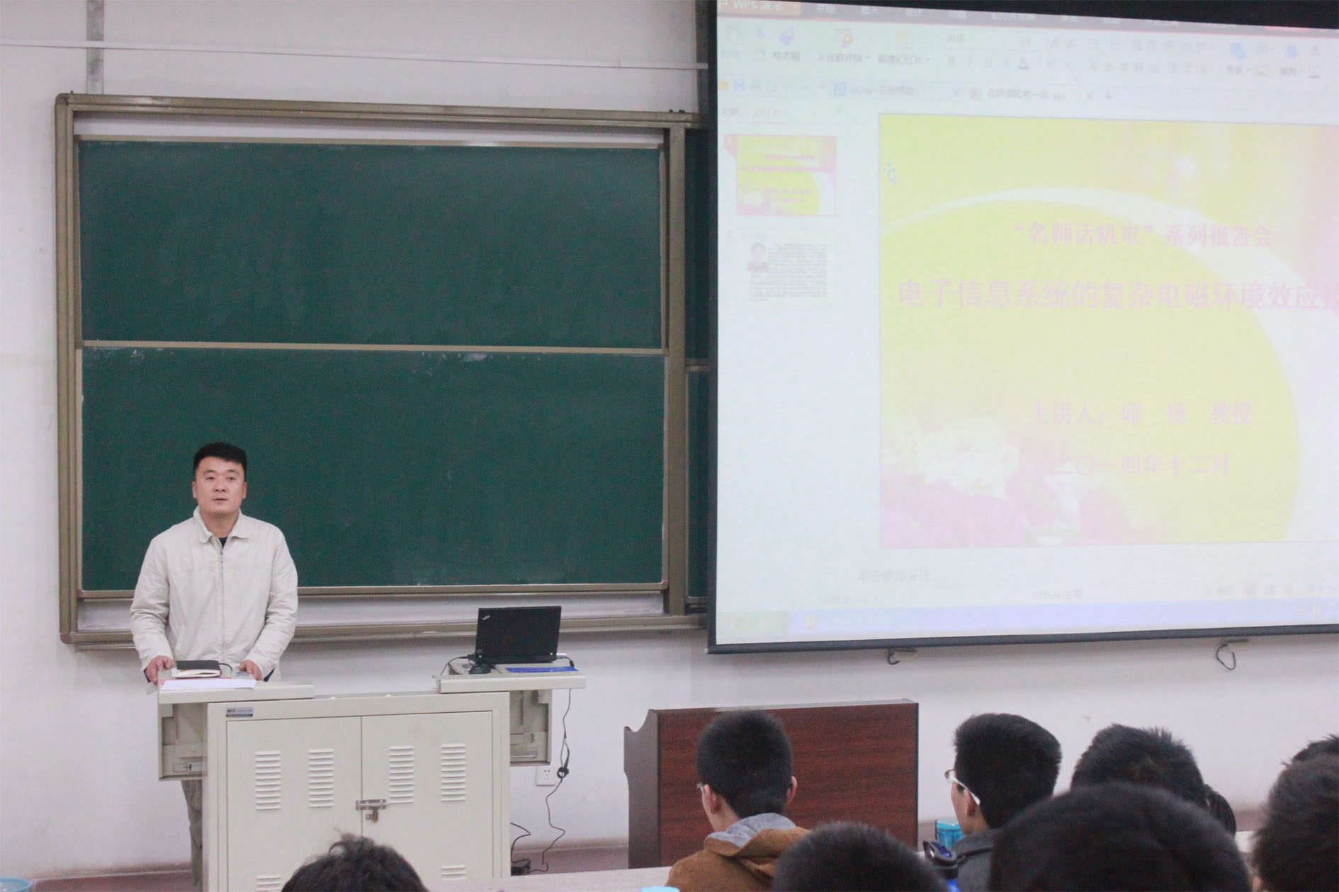 博士生导师邱扬教授为机电学子做了题为《电子信息系统的复杂电磁环境效应技术》的精彩报告。