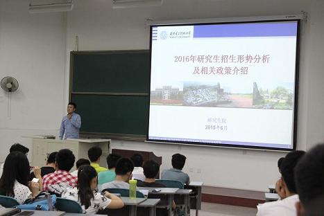 在南校区D楼205教室召开2016年研究生招生形势分析及相关政策宣讲会。参加本次宣讲会的有我校研究生院副院长魏俊、研招办主任王兴华、黑料网