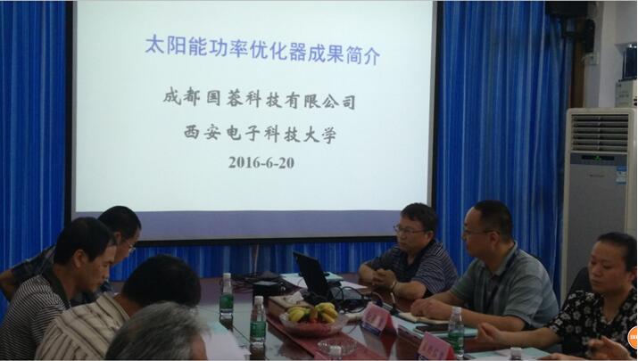 与成都国蓉科技有限公司联合研发的“太阳能功率优化器”于2016年6月23日在成都圆满通过四川省经信委组织的产品与成果鉴定会。参加这次鉴定会的有四川省经信委、四川省创新中心、成都市经信委的领导以及由7名来自全国本行业著名专家组成的鉴定委员会的成员。与会领导和鉴定委员会的专家评定验收了“太阳能功率优化器”项目组提交的产品样机和相关资料,听取了项目组长王水平高工关于该项目的工作总结以及项目组成员赵明英高工、成都国蓉科技工程师王冠林和白冲关于技术和成果方面的工作汇报。经过质疑答辩和意见交流,委员会讨论并一致通过了该项成果鉴定。