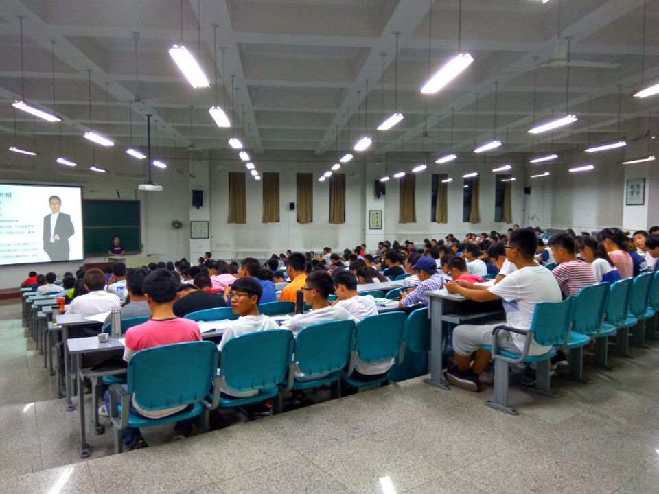 六点半左右,大一新生陆续来到教室就座,同学们热情高涨、兴致十足。讲座于七点正式开始,张震老师以一个小故事作为开端,引出本次讲座的内容。在之后两个小时的讲座中,他与同学们就大学生活进行了多方面的深入交流,从大一新生如何快速适应大学生活,到学校各级组织和社团的基本情况,他均悉心讲解。讲座临近尾声,同学们认真填写了调查问卷,表示从本次讲座活动中受益良多。九点,本次主题讲座圆满完成,大一新生有序散场。