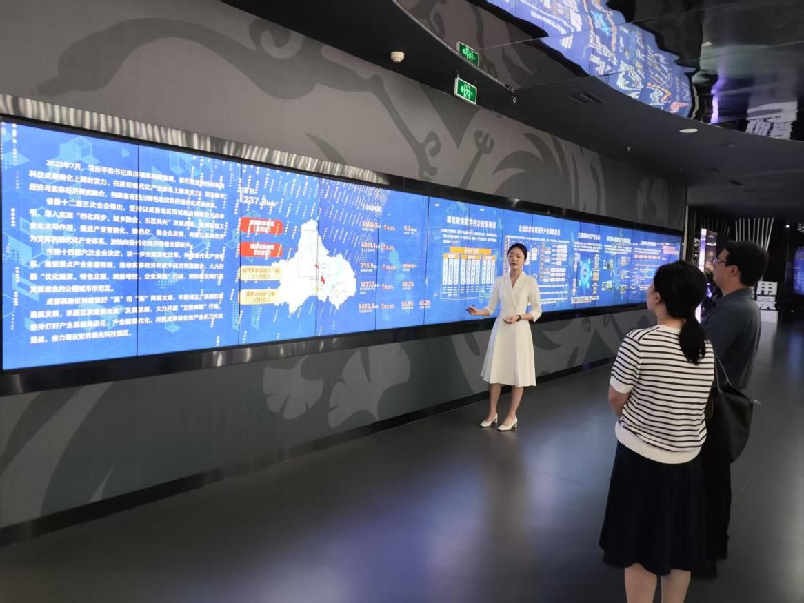 一行来到极米科技股份有限公司,极米科技行政部经理廖静为大家介绍了极米发展历程、研发情况、产品体系及黑料网,双方围绕强化沟通联系、深化合作联结、培养新兴行业重点领域人才、建设宽领域的就业体系等方面展开深入交流。接着,在芯原微电子有限公司,芯原成都人事行政高级副总裁付裕带领大家参观了公司文化墙,工程师现场展示并操作演示了最新的芯片产品,以及软件开发、人工智能在芯片研发与应用中的关键作用及具体应用场景,让大家清晰理解芯片技术与前沿科技融合发展的趋势。双方就微电子领域中的教学资源共享、实践平台搭建和专业人才培养交换意见,共同探索产教协同育人新路径。随后大家参观了天府软件园展馆,讲解员重点介绍了高新区数字经济发展现状,包括产业规模结构、创新生态与平台建设、政策支持、人才与企业培育、未来发展方向等内容。