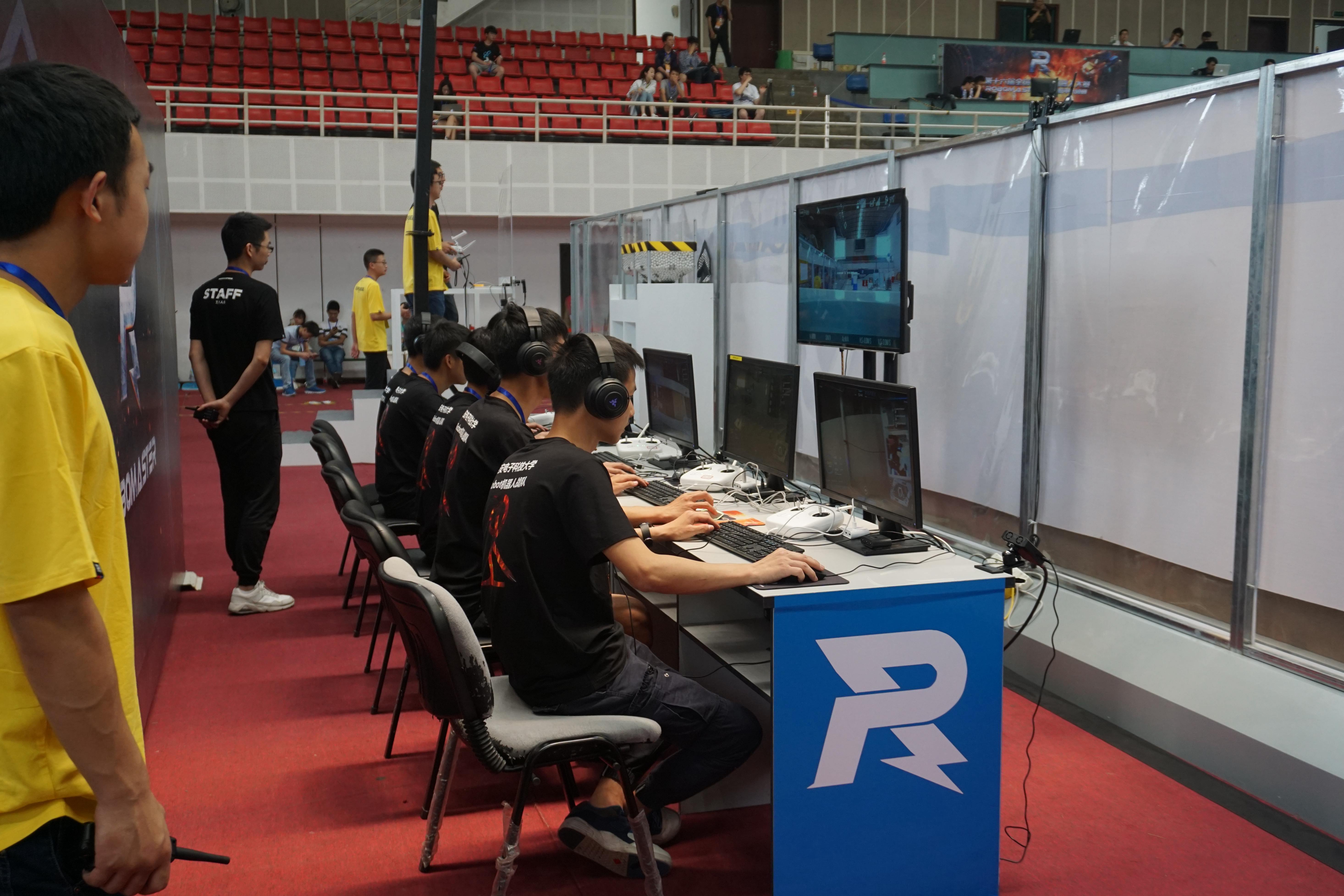 西电IROBOT机器人战队正在通过后台计算机控制机器人进行比赛