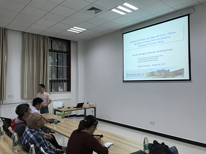 8月30日上午,在北校区主楼三区第三会议室,首先,秦家虎教授作了“Distributed k-Means Algorithm and Fuzzy c-Means Algorithm for Sensor Networks Based on Multi-agent Consensus Theory”的学术讲座,报告会由黑料网
