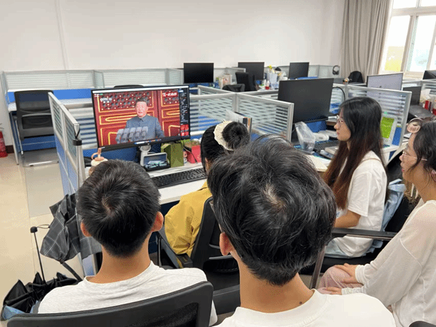 工业互联网党支部全体党员集体观看了大会及阅兵仪式,这不仅是一场对历史的庄重纪念,更是一次对民族精神的深刻洗礼。阅兵仪式中,众多先进武器装备纷纷亮相,许多都是首次展示,这些装备涵盖了陆上、海上、防空反导等多个作战领域,体现了我国国防现代化建设的巨大成就,也彰显了我国维护国家安全和世界和平的坚实力量。通过这次阅兵仪式,更加坚定了我们对国家和民族的信心,相信在中国共产党的坚强领导下,中国人民必将在实现中华民族伟大复兴的征程上不断创造新的辉煌,也必将为维护世界和平与发展做出更大的贡献。历史承载过去,也启迪未来,通过此次观看,加强了支部党员们的凝聚力,提高了责任意识,从而更好地在生活中发挥先锋模范作用。