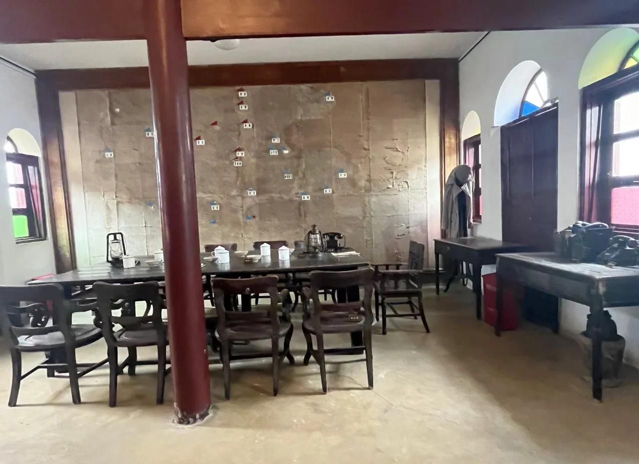 推开那扇镌刻着岁月痕迹的木门,会议室里的场景瞬间将时光拉回90年前。十二把藤椅围绕着一张板栗木长桌,墙上悬挂的军用地图还留有当年标注的红色箭头。讲解员轻声介绍:“就是在这不足20平方米的房间里,连续三天三夜的争论后,中国共产党第一次独立自主地解决了中国革命的重大问题”。党员们凝视着桌上的搪瓷缸与马灯,仿佛能听见当年与会者压低声音的辩论——在第五次反“围剿”失败、长征初期屡遭重创的危急关头,正是这种“不唯书、不唯上、只唯实”的勇气,让中国革命迎来生死攸关的转折。