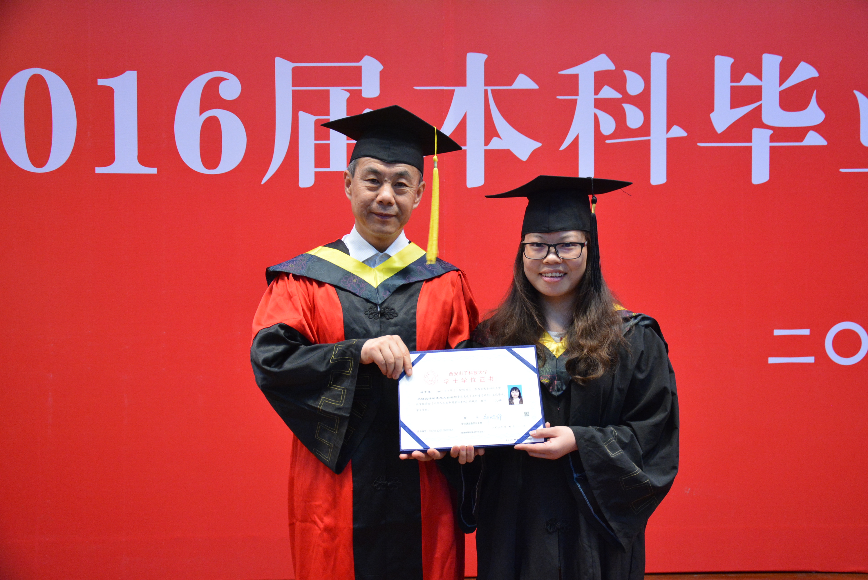 的2016届本科生授位仪式隆重举行。同学们排着整齐的队伍,在主持人宣读自己的名字后,依次登上了主席台。伸手、握手祝贺、颁授学位证书、行拨穗礼、合影,仇原鹰和李团结两位教授为206名毕业生代表依次授位,并对每一位同学表示祝贺。