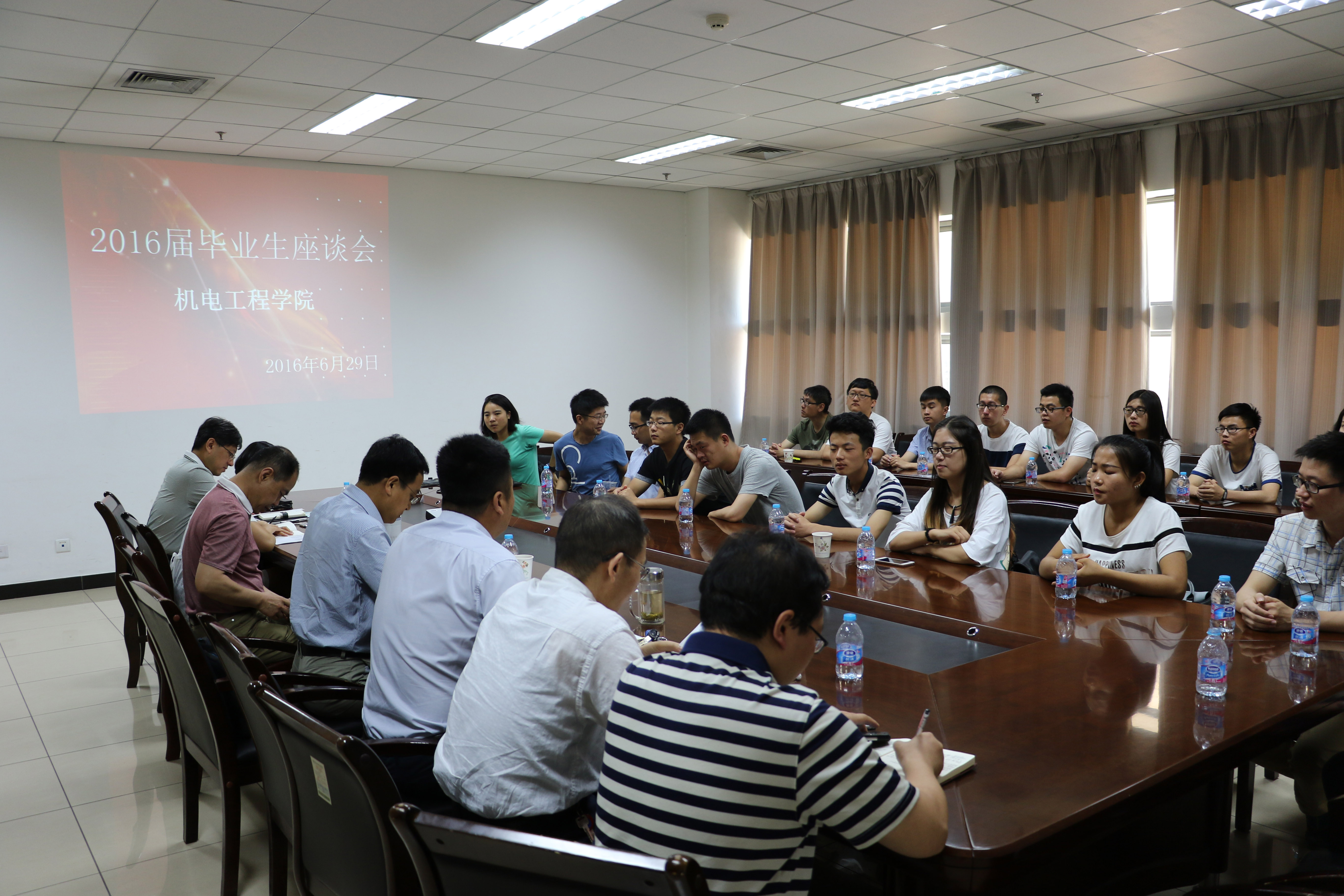 本科生培养体系的建议和意见,希望他们心系母校,毕业后能常回家看看。在机械设计制造及其自动化专业毕业生代表座谈会上,毕业生提出大三专业必修课程较少,相对外语和人文等专业教师教学过程中课堂缺乏开放性,《机械设计》课程纯理论课程,课堂案例教学不足,应适当加入工程实际应用的介绍等问题,教师代表表示学生们的意见对本专业的专业认证有很大帮助;工业设计专业的就业问题,是老师们最关心的问题,当在座谈会上得知,本届毕业生33人中,上研究生9人,就业24人,就业率100%,并且从事机电产品外观设计、结构设计、用户接口设计等本专业相关工作的同学占60%以上时,老师们格外欣慰,勉励大家继续努力;此外还与自动化专业、电子封装专业本科毕业生代表就学生在校期间学习过程中的培养方案制订、课程设置、授课方式、课程学习、考核方式、课外教学、实践教学、毕业设计、相关保障条件等方面的话题与一线教师代表进行深入的交流和沟通。