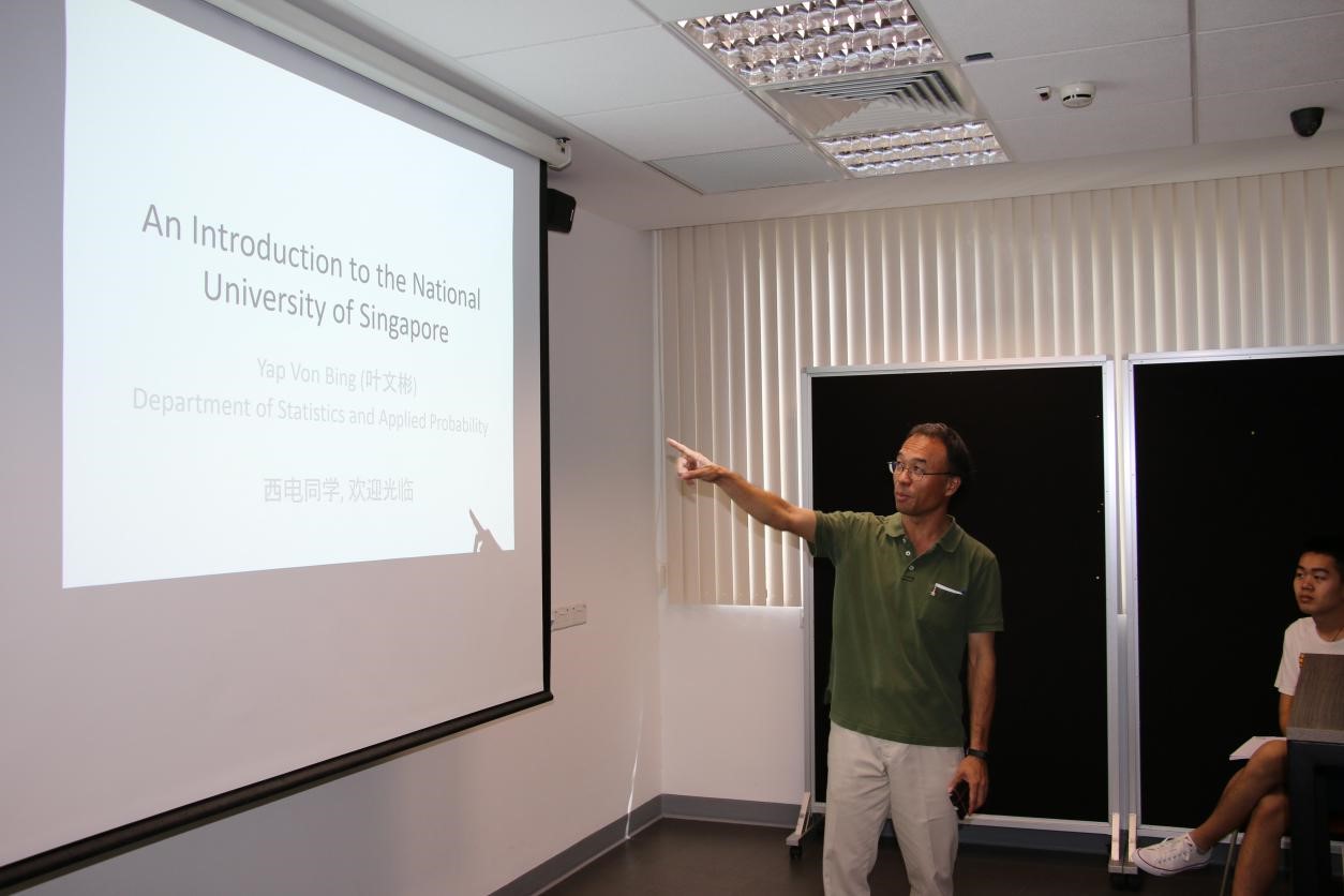 主任Yap Von Bing教授向同学们娓娓道来。“这是我只会说的中文,接下来我只能说英文了。”在开始上课之前,教授便风趣地调侃了自己的汉语水平,然后详细介绍了新加坡国立大学的教育体系,并对NUS和西电的教育体系差异进行了分析,引起了同学们对于两种教育体系的思考,这是一次全新的脑力激荡。