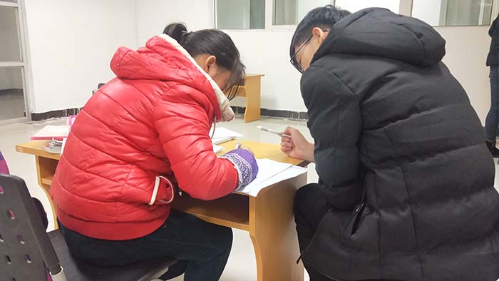 询问了孩子们的学习疑难点,对他们的情况有了大致的了解后,就开始为他们讲解平时学习上遗留的困惑。正赶上期中考试刚结束,志愿者们针对他们的试题,为他们讲解错题,并给出同类型题让他们触类旁通。看着他们充满疑惑与不解的眼睛里慢慢透露出豁然的神情,志愿者们感到十分欣慰。和孩子熟悉了以后,他们渐渐开始主动提出问题,也开始和志愿者有更多的互动。