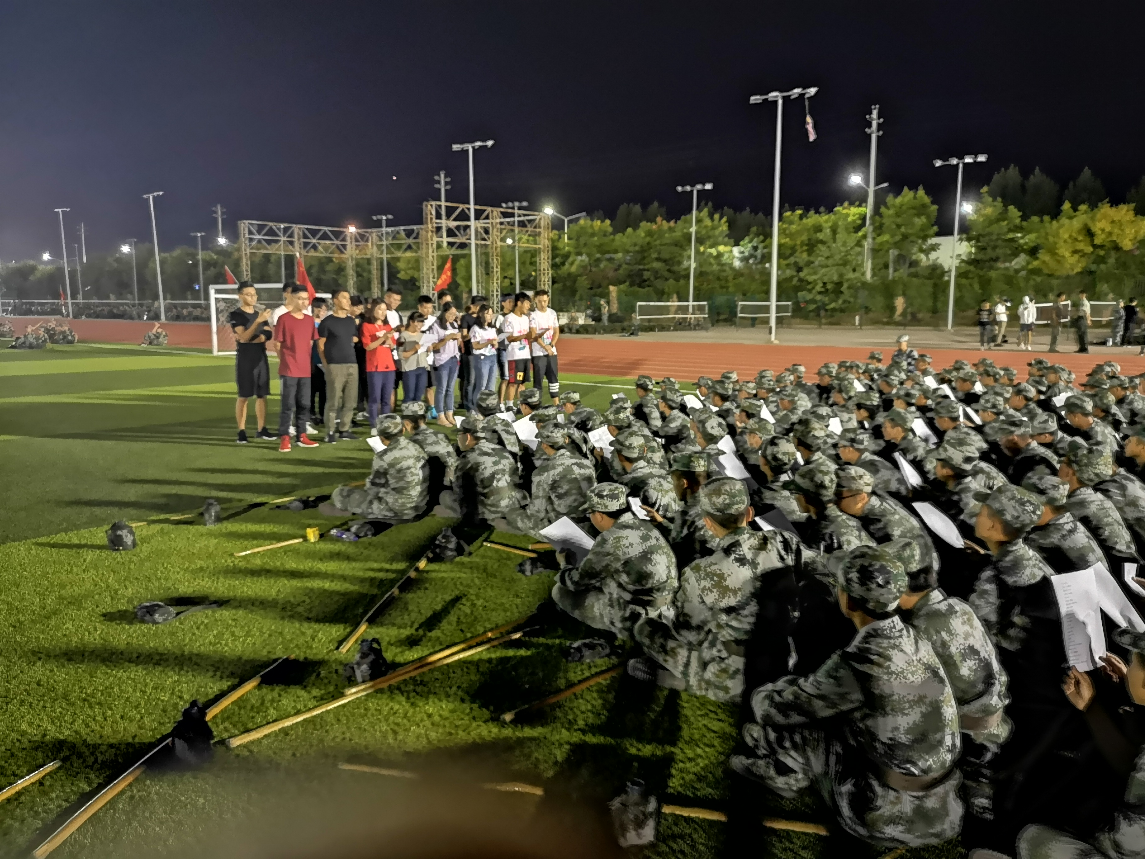 18级新生所在的连队与新生们进行互动,亲切答疑,并宣传介绍我院各组织。