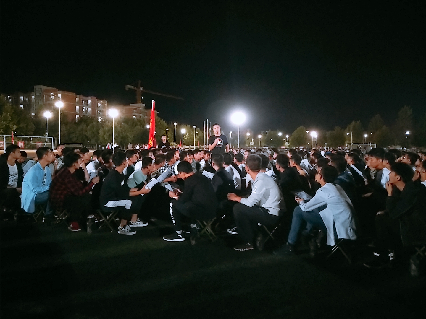 18级的同学们对学长学姐的到来表示了热烈的欢迎。大二大三的同学们为大一新生演唱了《团结就是力量》和校歌《与共和国同行》,并逐句教新生唱校歌。“团结勤奋,求实创新,厚德求真,力学笃行。我们是光荣的西电科大人。”