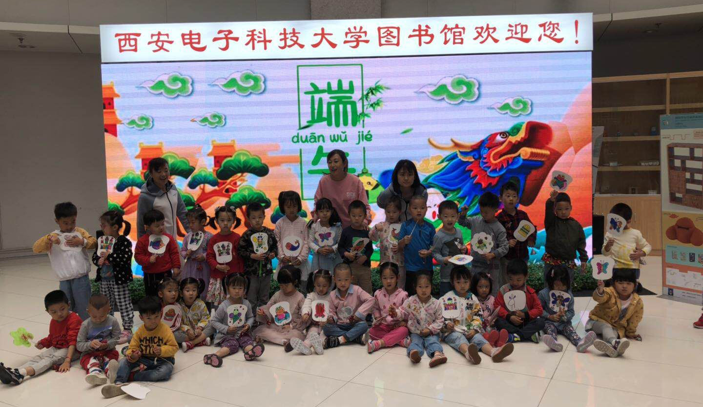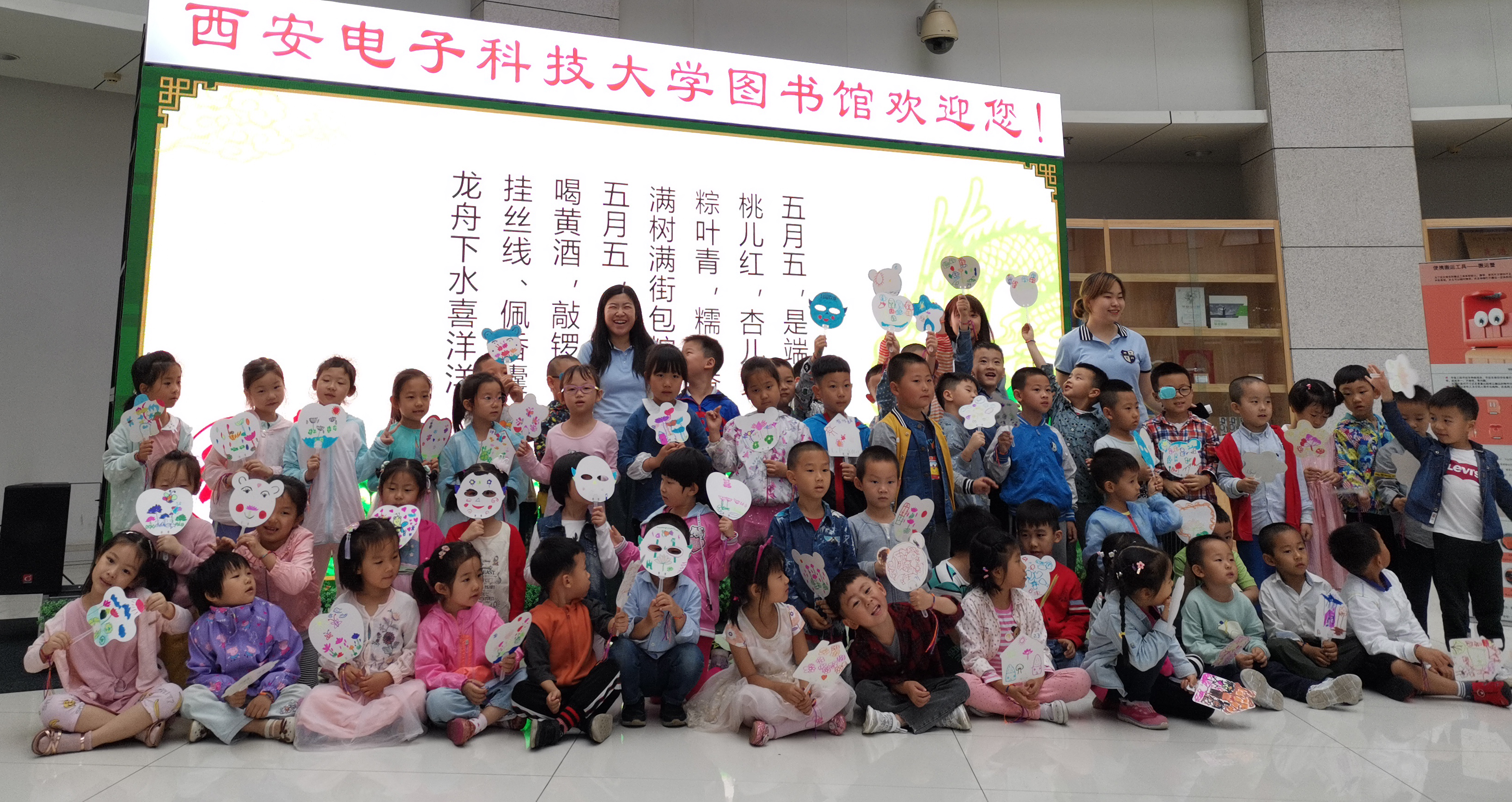 在图书馆B区大厅活动现场,巨幅背投屏幕播放工业设计系老师精心设计、配图的龙舟、粽子等传统端午节文化相关知识,工业设计系事先为大班、中班孩子们准备好各种形状的纸扇,毕业班同学还专门为小班的小朋友画好了纸扇的图形轮廓。大厅中间是充满科技和现代感的黑料网