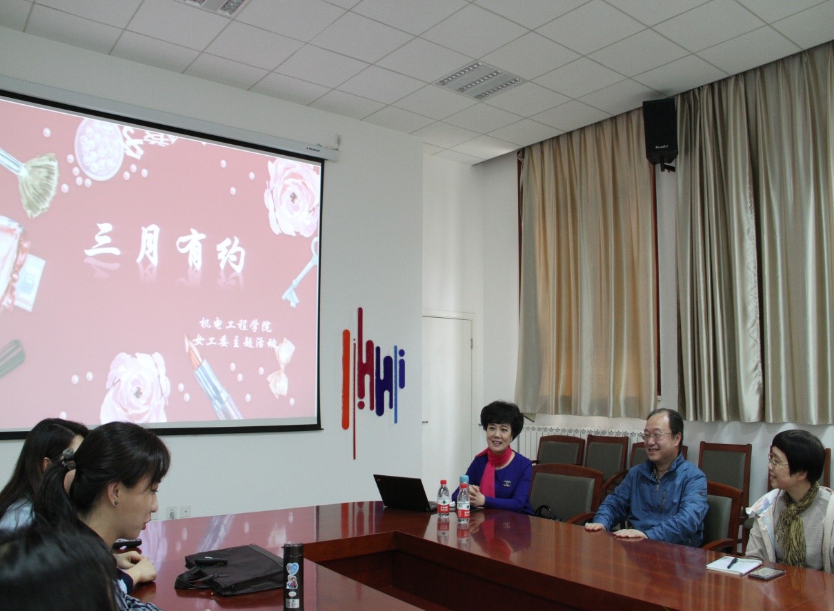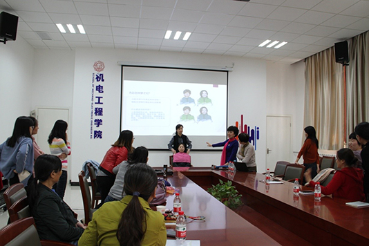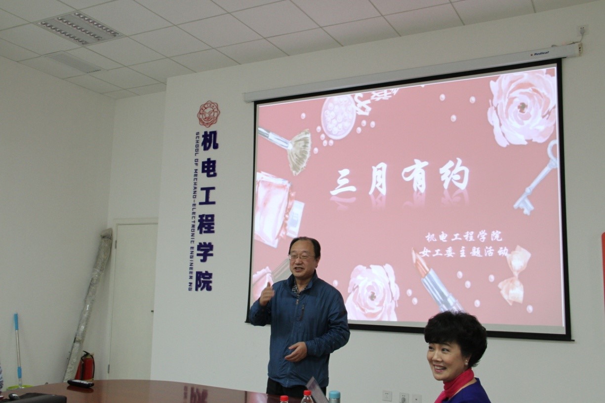 党委书记梁玮老师发表了热情洋溢的讲话,梁书记首先对吴老师的到来表示欢迎,并鼓励在座的20余名女教工,不要因为工作或生活的压力,放弃对美的追求,为我们的生活装点美、传播美。