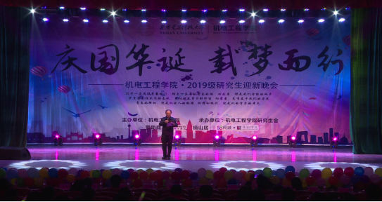 登台致辞,不仅表达了对2019级研究生新生的热烈欢迎,而且还劝谏新生自觉承担青年人的担当与责任,把握当下,以崭新的状态拥抱变化,迎接挑战,乘风破浪;用奋斗的姿态加油奔跑,勇立潮头,不负年华;用积极的心态竭力续航,收获精彩,自觉把小我融入祖国的大我之中,努力实现人生的价值。最后他向台前幕后工作人员的辛勤付出表示衷心的感谢,并预祝晚会圆满成功。
