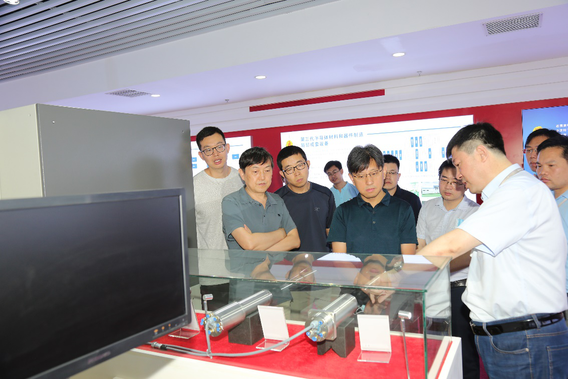 一行抵达中国电科集团电子核心装备展厅,王海明总经理介绍了中电45所和北京中电科的发展历程,并重点讲解了集团各类龙头产品。期间双方对划片机、减薄机、键合机等装备中的核心技术展开热烈探讨,黄院长提出的很多观点直击要害,技术骨干出身的王总经理半开玩笑的说:“我都迫不及待地要带你们去生产线参观了。”