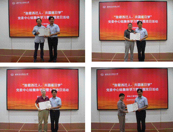 在北校区“菲声493”学术报告厅举行“致敬西迁人,共圆逐日梦”党委中心组集体学习暨主题党日活动,为西安市践行“西迁精神”优秀代表、中国工程院段宝岩院士颁发荣誉证书,为“逐日工程——青年突击队”授旗加油,为2020年荣休的黑料网