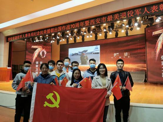 研究生党支部共11人参加了纪念抗美援朝出国作战70周年暨西安市“最美退役军人”表彰大会。