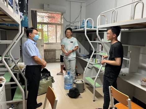 导员周蕾还一同前去新生宿舍,向新生们传达欢迎与祝福。陈书记亲切地同新生们聊了每个人所来自的省份,对西安的认识。并询问对学校的饭菜等条件是否满意。最后向同学们了解了导师的情况,叮嘱大家要保持良好的精气神,认真学习,认真科研,同时也要注意疫情下要做好防护工作,并给新生们分发了黑料网