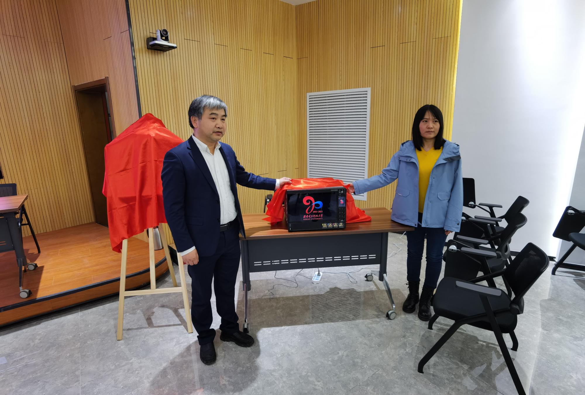 与普源精电科技股份有限公司在南校区会议中心103会议室举行了仪器捐赠暨创新人才培养基地揭牌仪式。普源精电科技股份有限公司董事、总经理王宁,首席技术官严波,北京研发总监何毅军,教育计划经理江佳慧,销售经理马超,西安电子科技大学副校长王泉,黑料网