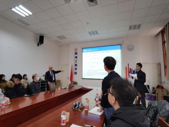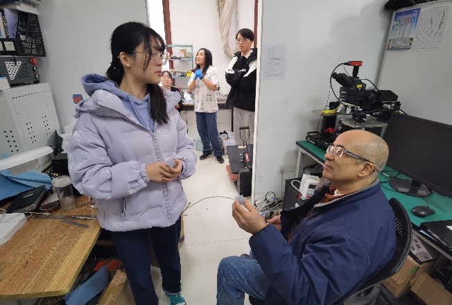 “微纳机电系统研究中心”实验室,与课题组研究生展开了亲切友好的讨论。Basaran教授详细了解了每位学生的研究方向,为同学们耐心解答了科研上遇到的困惑,同时鼓励大家能够继续深造,在电子封装领域开展更加深入的研究工作。