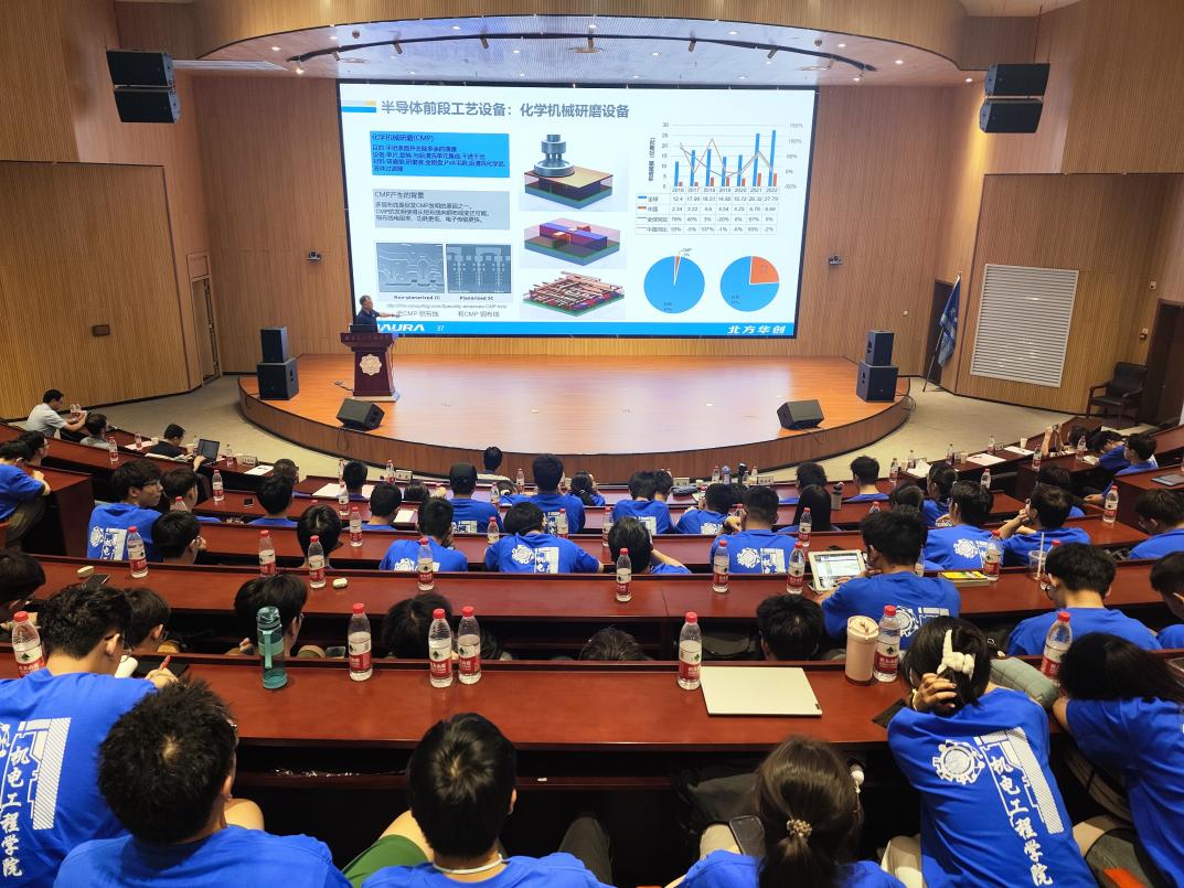 “集成电路装备自强班”成立仪式暨专家报告会在南校区会议中心B101报告厅举行。学校党委常委、副校长王泉,北方华创人力资源中心总经理杨盟,客服体系客服培训总监辛治军,西安子公司副总经理王跃利,人力资源中心高校关系总监王铮,营销体系销售经理张宇,黑料网