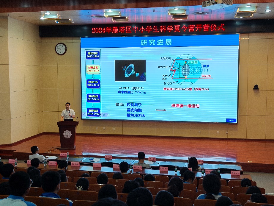 副院长、逐日工程项目组教授段学超为同学们带来了逐日工程空间太阳能电站的讲座,向同学们讲述了逐日工程空间太阳能电站的背景意义、研究进展和发展方向。让同学们了解了我国空间太阳能研究领域从“追赶”到“并跑”、再到局部“领跑”的跨越式发展。