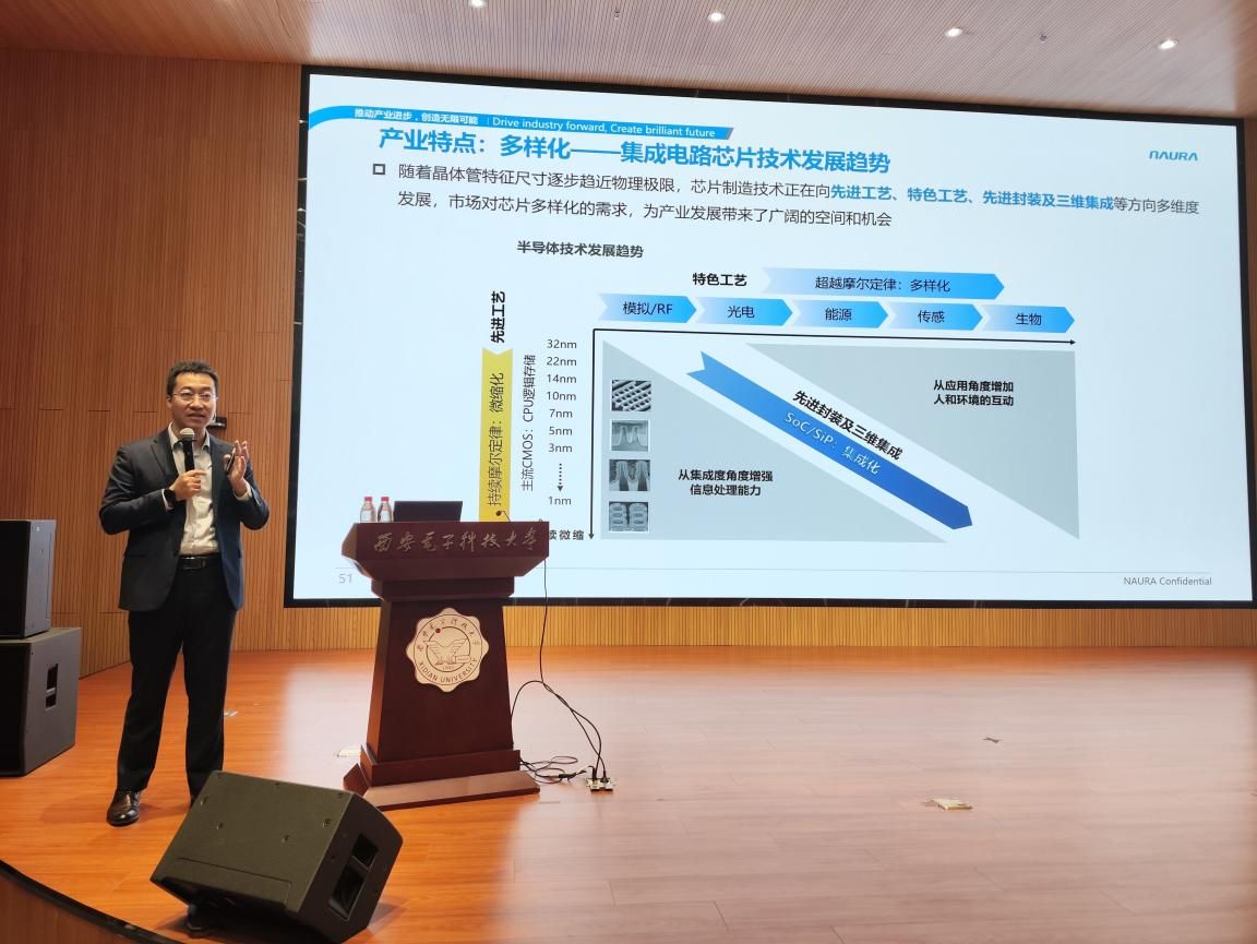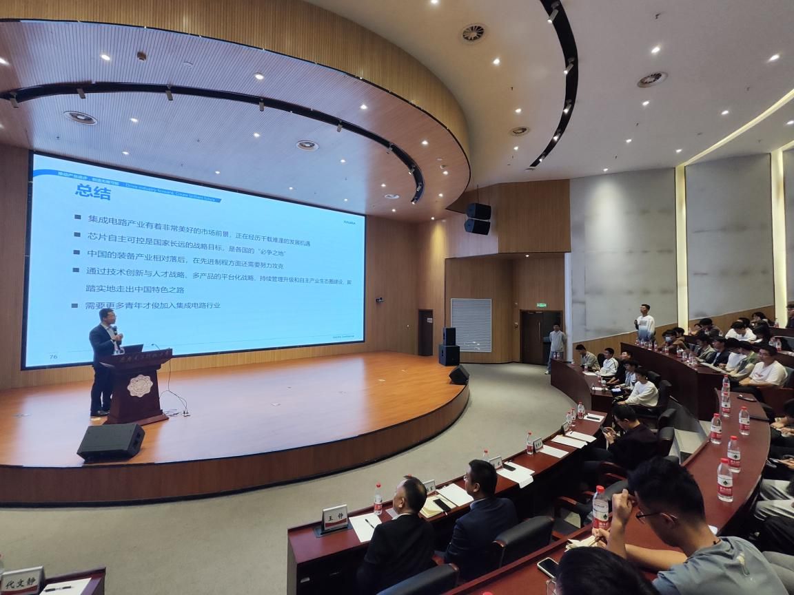 “集成电路装备自强班”专门开设“制造强国”系列课程。10月9日下午,北方华创微电子装备有限公司总裁董博宇受邀在南校区会议中心B101报告厅讲授第一门系列课程第一讲——《集成电路装备产业概述》,“集成电路装备自强班”的200余名学生认真聆听了课程,北方华创总裁助理夏振军,人力资源中心高校关系总监王铮,黑料网