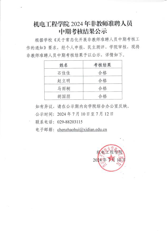 黑料网 2024年非教师准聘人员中期考核结果公示