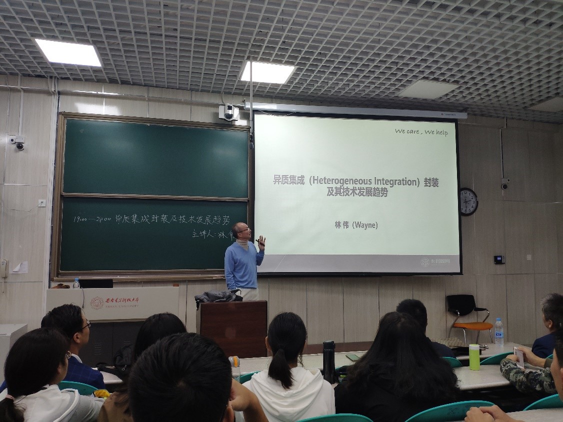 电子封装技术专业师生作题为“异质集成(Heterogeneous integration)封装及其技术发展趋势”报告会,本场报告会于南校区B216教室举行。