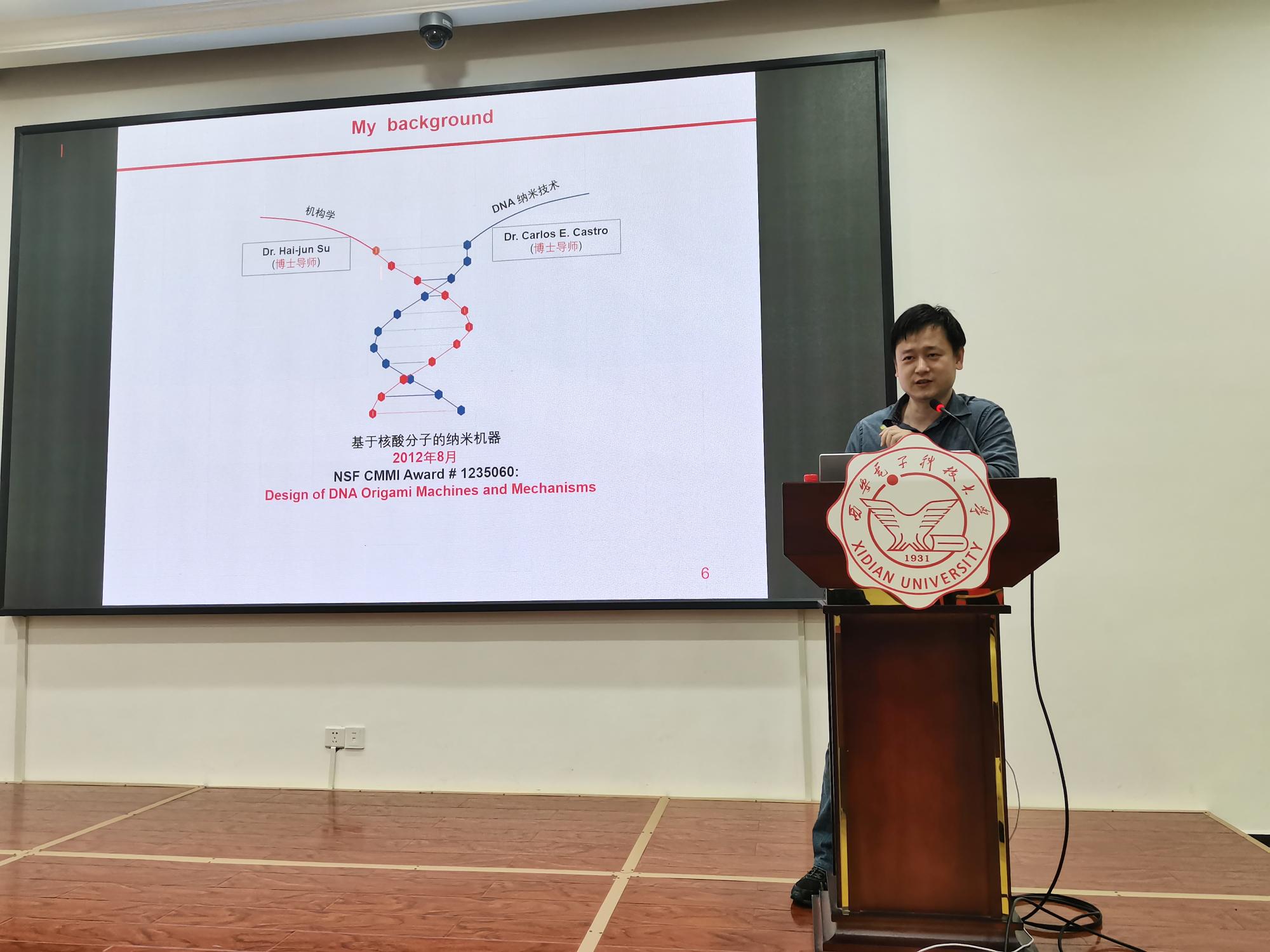 报告厅作了题为“DNA纳米机器抓手的设计与应用”的学术报告。