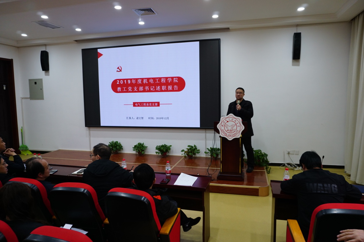 各系所、机关等8位教工支部书记先后对2019年支部工作开展情况进行了述职。各教工党支部书记从开展“不忘初心、牢记使命”主题教育情况、党支部组织建设情况、师德师风与课程思政情况、不足与下一步工作规划等方面进行了汇报,总结过去,展望未来。各教工支部联系党委委员和院领导对述职情况进行了点评,充分肯定了各支部在2019年度的工作成效,并针对存在问题提出了改进建议。与会党员代表在述职结束后以填写在线问卷的形式,对各教工支部书记的述职进行了现场测评。