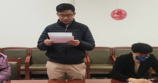 王卫东介绍了此次支部大会的人员出席情况,符合党员转正的有关规定,并汇报了会议的流程和需要讨论的议题。